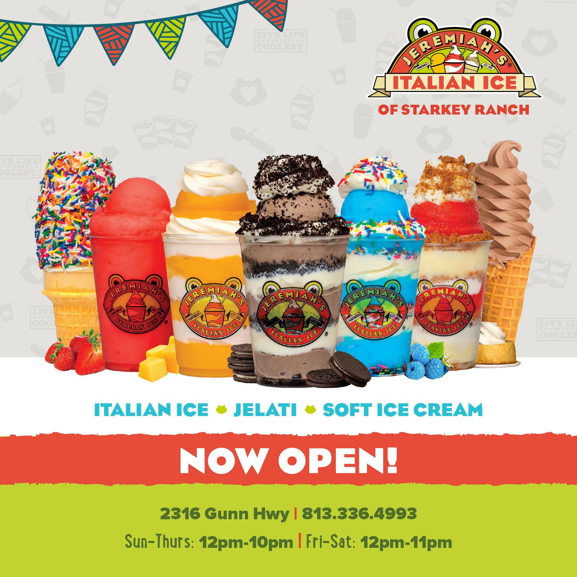 Jeremiah’s Italian Ice is open on Gunn Highway in Odessa at 2316 Gunn Hwy, near SR 54. If you’ve never been, this is the place for bright, bold Italian Ice flavors, rich and creamy soft ice cream, and their fan-favorite Jelati, which layers both together for the best of both worlds. It’s a fun, family-friendly stop and perfect for cooling off any day of the week. Go give them a warm neighborhood welcome.